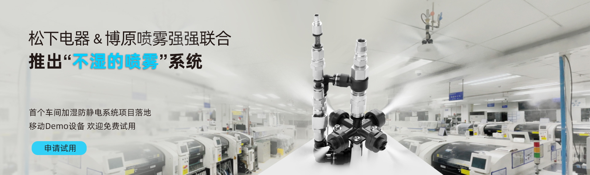 雙方于2023年簽訂MOU戰略合作協議,目前水霧項目穩定有序的開展,兩個SMT車間智能加濕項目完美落地,噴霧控制系統已實現國產化,后續雙方會持續優化產品及項目流程,為用戶提供更優質的服務。 ...